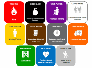 An emergency code is a notification of an event that requires immediate action. Emergency codes are distinguished by using standardized colours which are set by the Ontario Hospital Association (OHA) to ensure uniformity across all hospitals in Ontario.